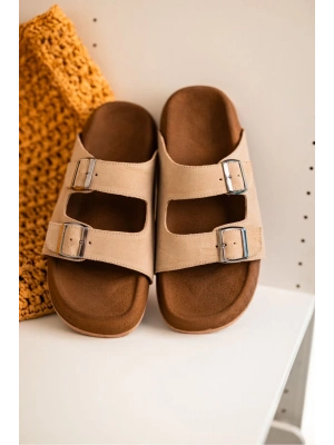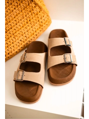 Lorenzo Bej Çift Tokalı Hafif Mantar Taban Erkek Terlik