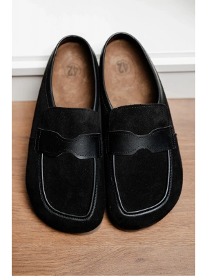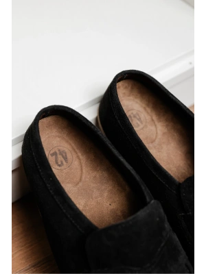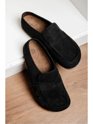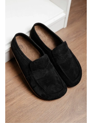 London Erkek Siyah Süet Loafer Sabo Terlik Ayakkabı