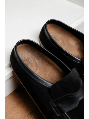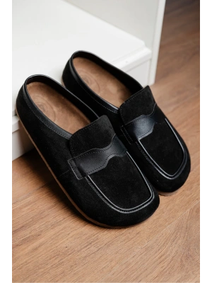 London Erkek Siyah Süet Garnili Sabo Loafer Terlik Ayakkabı
