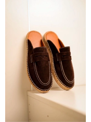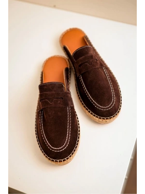 Bloom Hakiki Deri Acı Kahve Kauçuk taban terlik