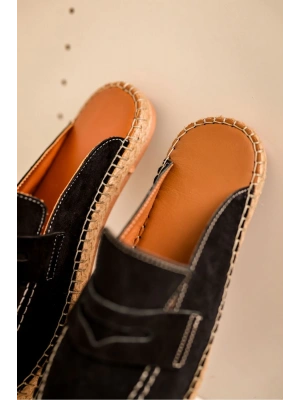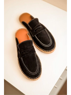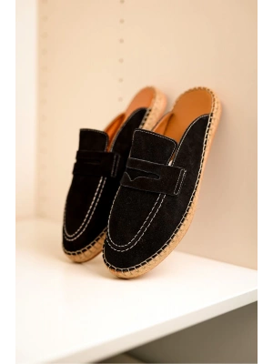 Bloom Hakiki Deri Siyah Kauçuk taban terlik